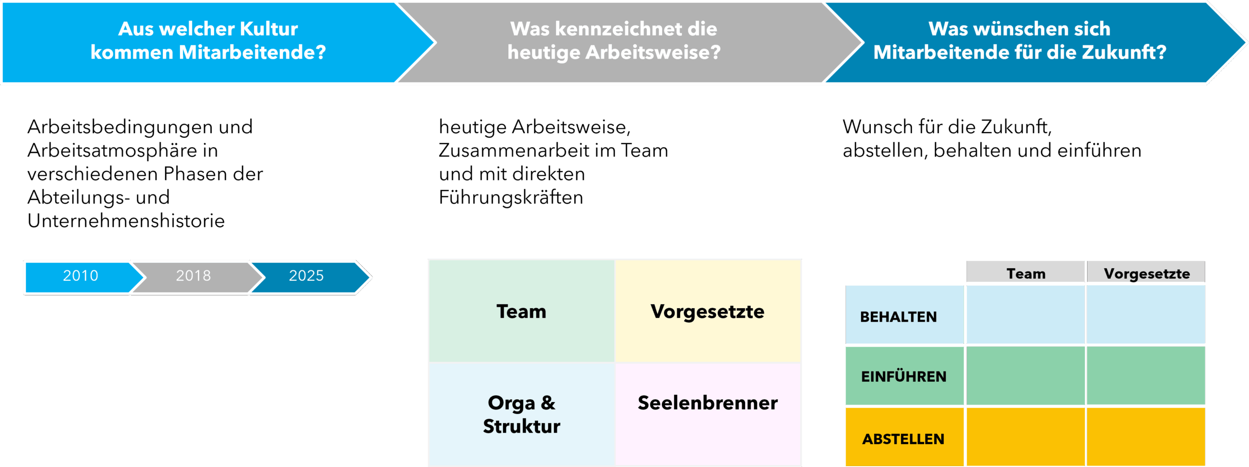 Die quantitativen Ergebnisse werden anschließend in Workshops und Interviews mit Mitarbeitenden und Führungskräften vertieft. Diese Phase ermöglicht es, Zahlen mit Erfahrungen und Deutungen zu verbinden.